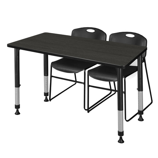 Regency Kee 48 x 24 in. Adjustable Classroom Table & 2 Zeng Stack Chairs Black
