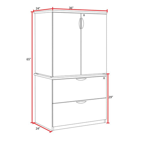 The Legacy Storage Collection offers it all from combo files and bookcases to stackable storage and laterals. This storage set includes one Lateral File and one Stackable Storage Cabinet. It is a great accent to private offices, filing rooms and more. The Lateral has two large full suspension drawers that accept both letter and legal filing. Both drawers lock and include ergonomically designed drawer pulls for convenience and ease in operation. The Storage Cabinet has two locking doors that open to a spacious interior with two adjustable shelves that can be moved in 1-inch increments. When stacked on top of the lateral and used for common supplies, it can ease stress from bending over to reach supplies stored near the floor. Finished in an attractive Cherry laminate, storage components coordinate with other Legacy furniture which makes customizing easy. The Legacy collection is constructed of a 1-inch thick thermal fused melamine laminate with a 3-millimeter commercial grade matching PVC edge. Laminates are scratch, stain and scald resistant. Legacy casegoods are backed by a 10-year limited manufacturer's warranty.
