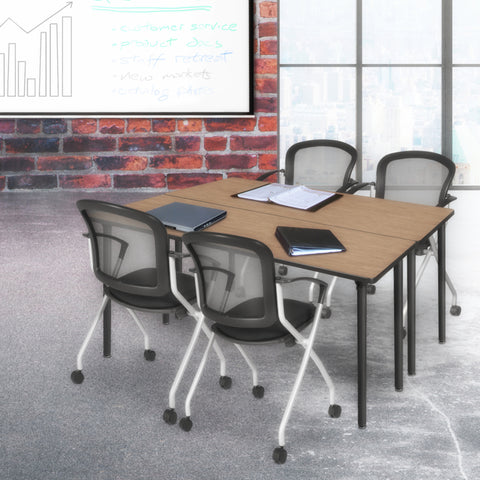 Give everyone more room with Kee tables. Kee Mobile post legs come four to a set and include locking casters, which makes moving the whole table easy. This 42 x 24-inch table assembles in a snap with just a few screws. The table is constructed of a thermal fused melamine laminate tabletop that is 1-inch thick and finished with a black Bumper Edge edge band. This Ash Grey tabletop is double-sided and finished in White on the other side. Simply pick the side you like and install the base on the other. Self tapping wood screws and a placement template are included. Laminates are scratch, stain and scald resistant and wipe clean easily. Rounded corners make the table safer for everyone. A sleek alternative to pedestal style bases, this set of post legs comes in a classic black to match any decor. The legs are constructed of tubular steel with locking hard plastic casters on the bottom of each leg. Kee tables are backed by a 10-year limited manufacturer's warranty.