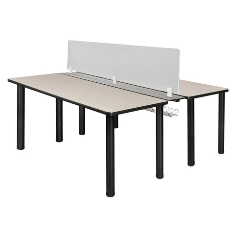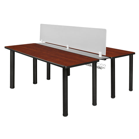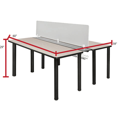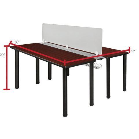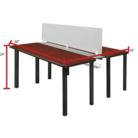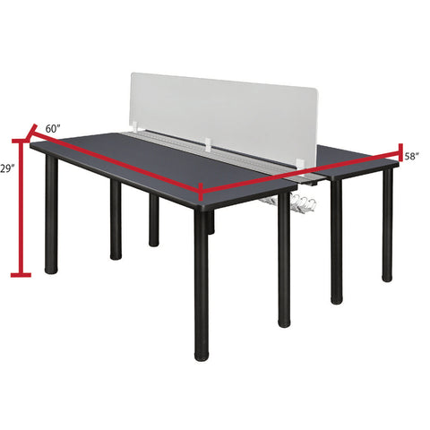 - Includes two 60-inch long Kee desks connected by a wire management system that runs the length of the desks and a frosted plexiglass privacy divider