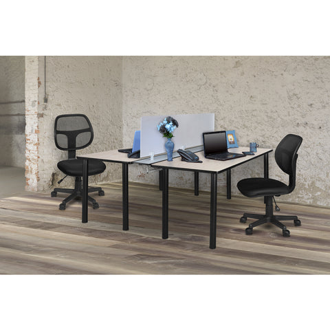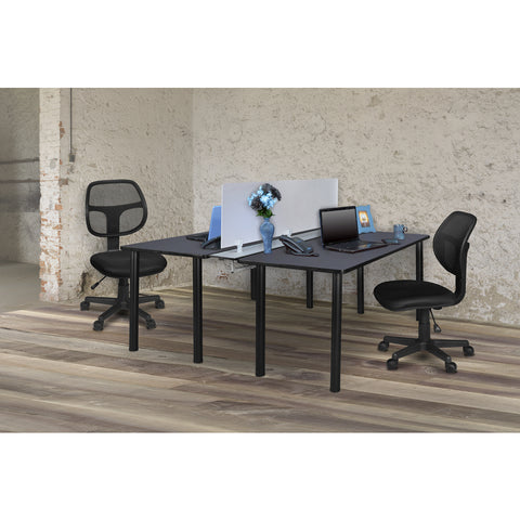 - Tabletop is constructed of a 1-inch thick thermal fused melamine laminate finished with a black T-mould edge banding