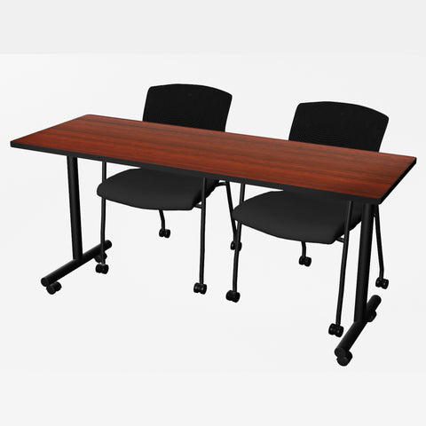 - Versatile table and chair set includes a 48-inch Kobe mobile table with locking casters and two Mesh Knight Guest Chairs