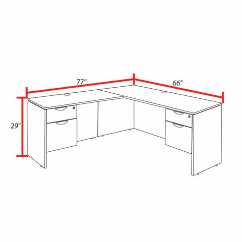 Versatility is just the beginning with so many Legacy desking options. This classic L-shaped corner desk is a great choice for professional and home offices alike. It comes with two box-file pedestals that each have one box drawer and one file drawer that accepts both letter and legal filing. All drawers lock and include ergonomically designed drawer pulls for convenience and ease in operation. Adjustable glides on the bottom of the base keep the desktop level and are easy to adjust. Wire management grommets keep cables clear of work areas. Finished in an stylish Ash Grey laminate, this desk coordinates with other Legacy furniture. The Legacy collection is constructed of a 1-inch thick thermal fused melamine laminate with a 3-millimeter commercial grade matching PVC edge. Laminates are scratch, stain and scald resistant. Legacy casegoods are backed by a 10-year limited manufacturer's warranty.